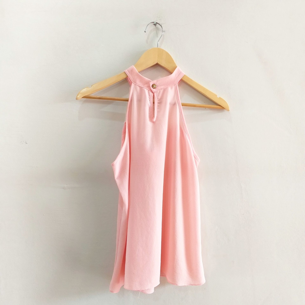 Regata rosa com detalhe na gola em renda, em bom estado.
