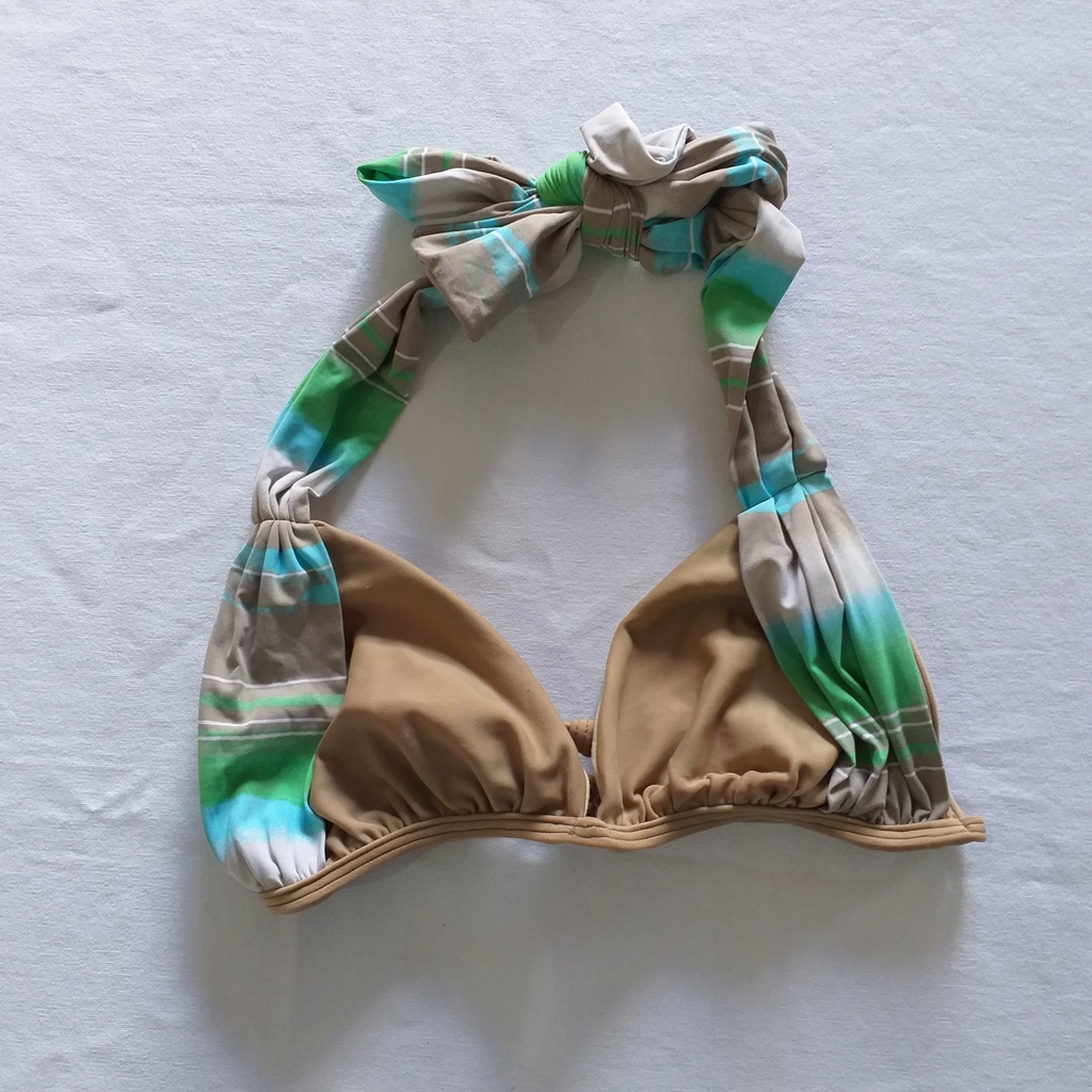 Top bege com listras, em bom estado.