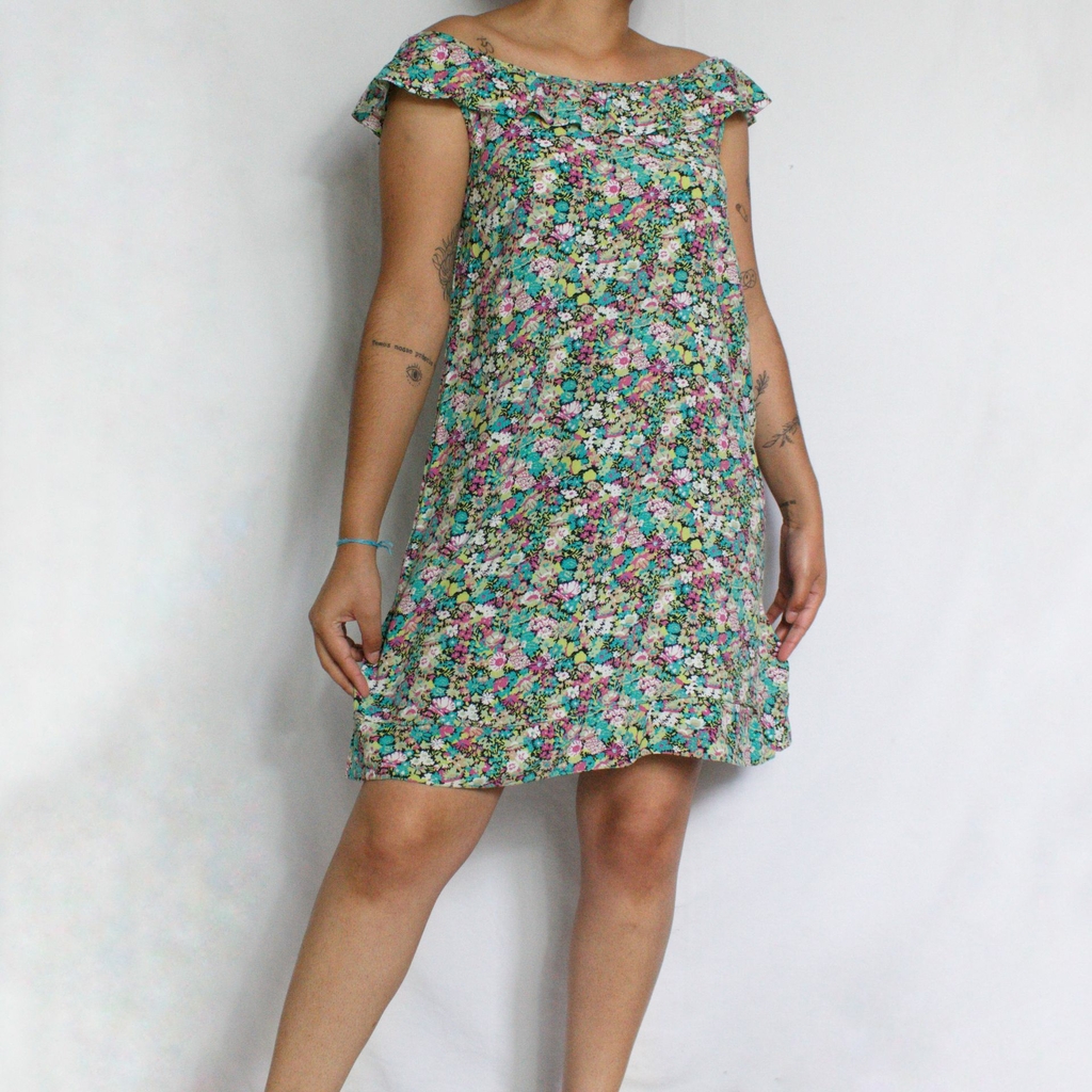 Vestido com estampa foral  e babado na gola pode ser usado como ciganinha ou alça normal, em bom estado.